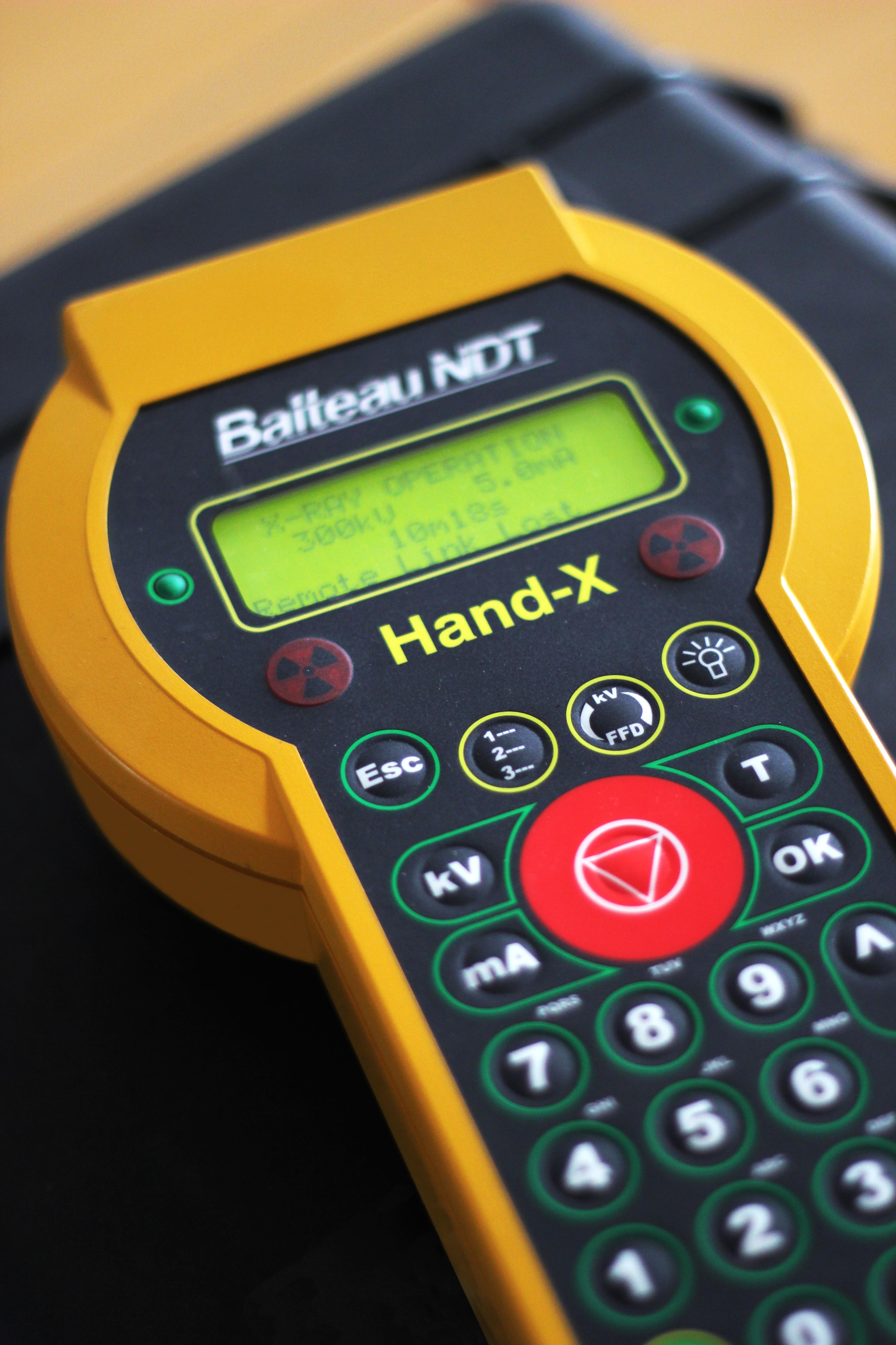 Having the control at your fingertips at all time including exposure is also of great advantage in terms of security as you can interrupt exposure at any time if your surveyed area is not cleared anymore. The built in Dosimeter completes the safety-oriented features of the unit by providing the operator a reliable and convenient monitoring of exposure at the very place where he or she stands. The Hand-X® Power connected to the generator has specifically been designed to cope with harsh environment and bad power supplies.
