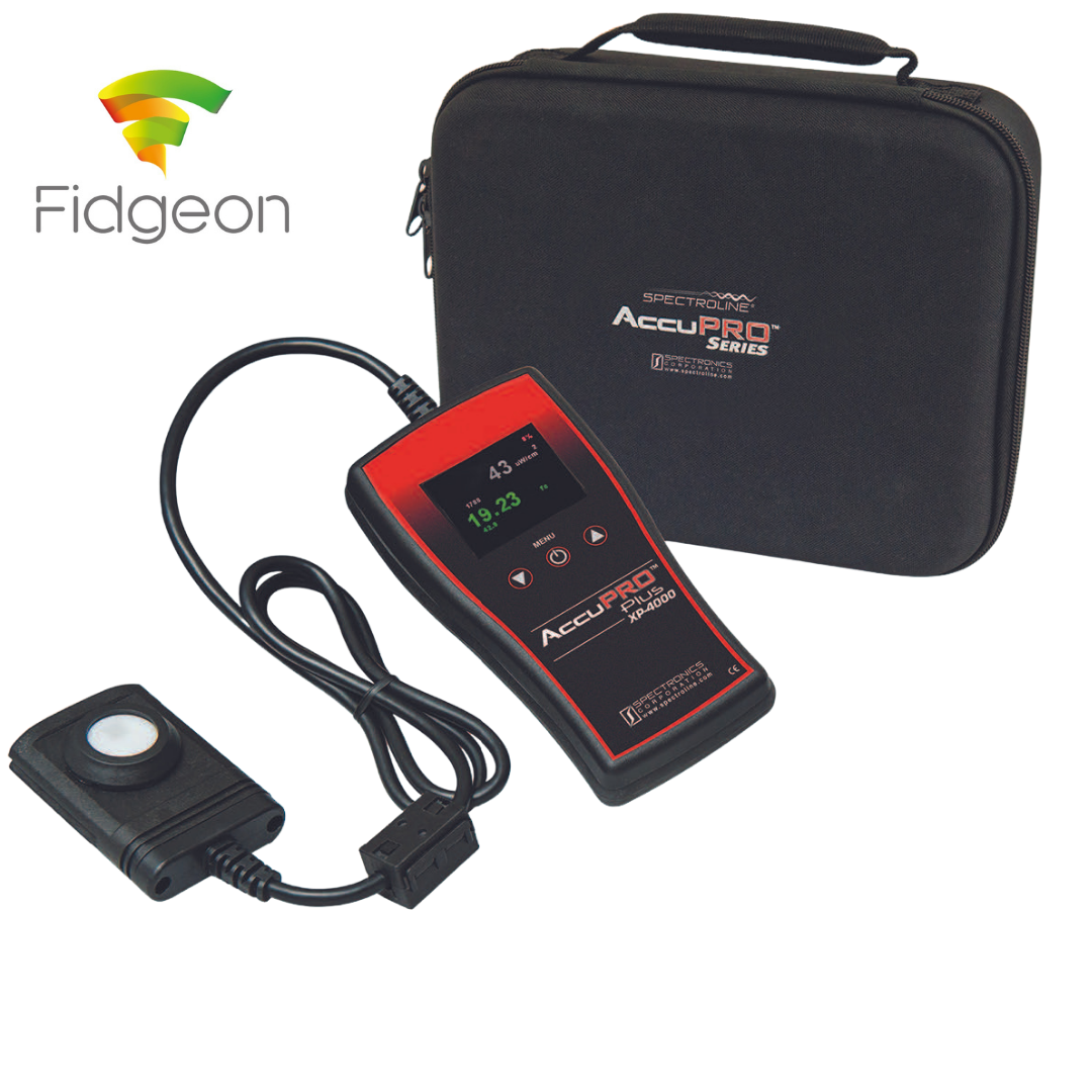 The AccuPro (XP-2000) readout unit features a single dual-wavelength sensor detector designed to measure both ultraviolet (UV-A) and visible light. It is compliant to ASTM E2297.