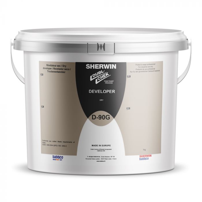 D-90G is a dry penetrant developer. It has great resistance to the phenomenon of segregation. It is made of 100% mineral powder, with a white matte finish for reduced UV reflections. it can be accompanied by all fluorescent penetrants.