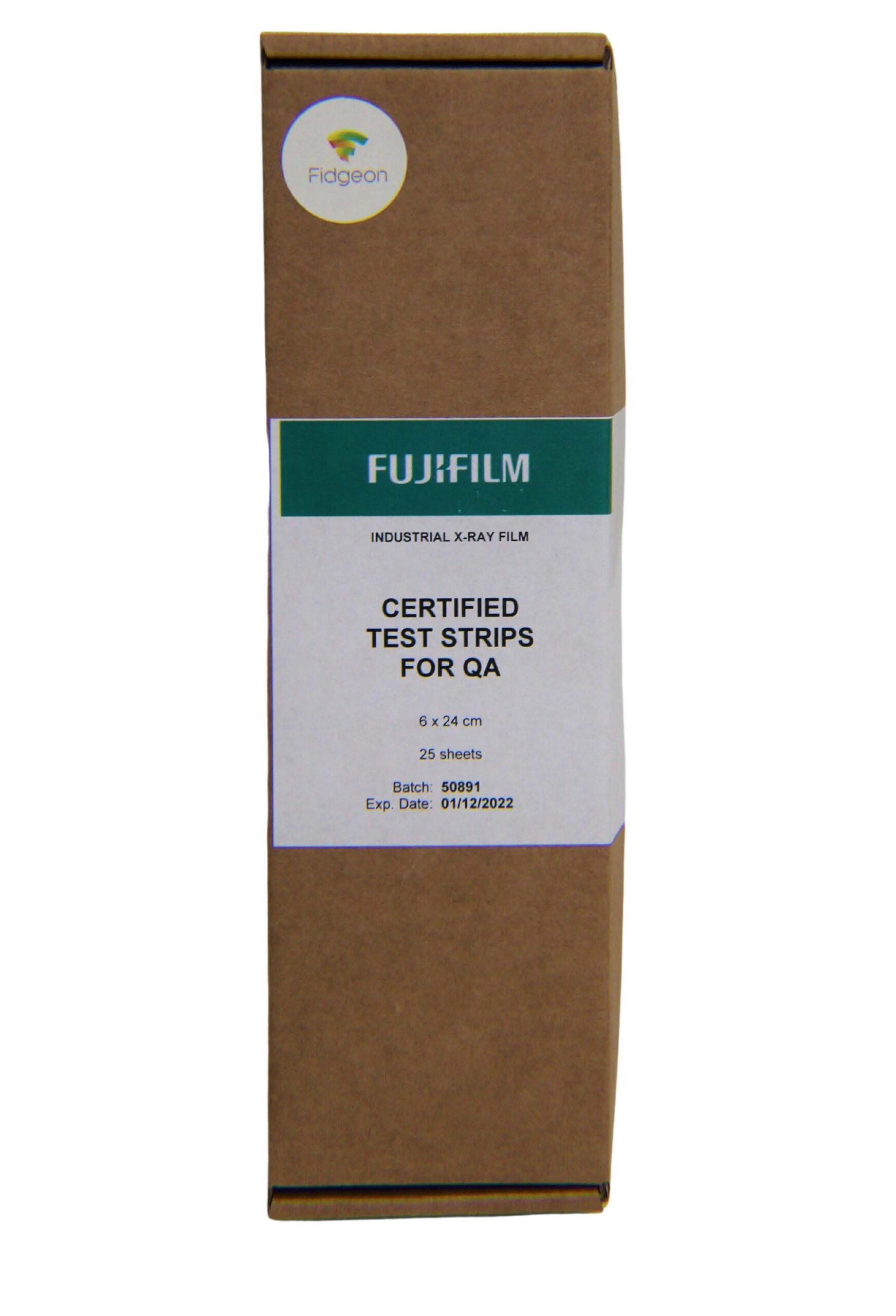 The Fuji X-ray Process Management Control strips are supplied in boxes as 25 certified and exposed, undeveloped PMC strips in individual daylight packaging. Each strip bears a unique serial (ID) number, even after processing. Also detailed instructions for use. A certificate for compliance to EN 584-2 and ISO 11699-2