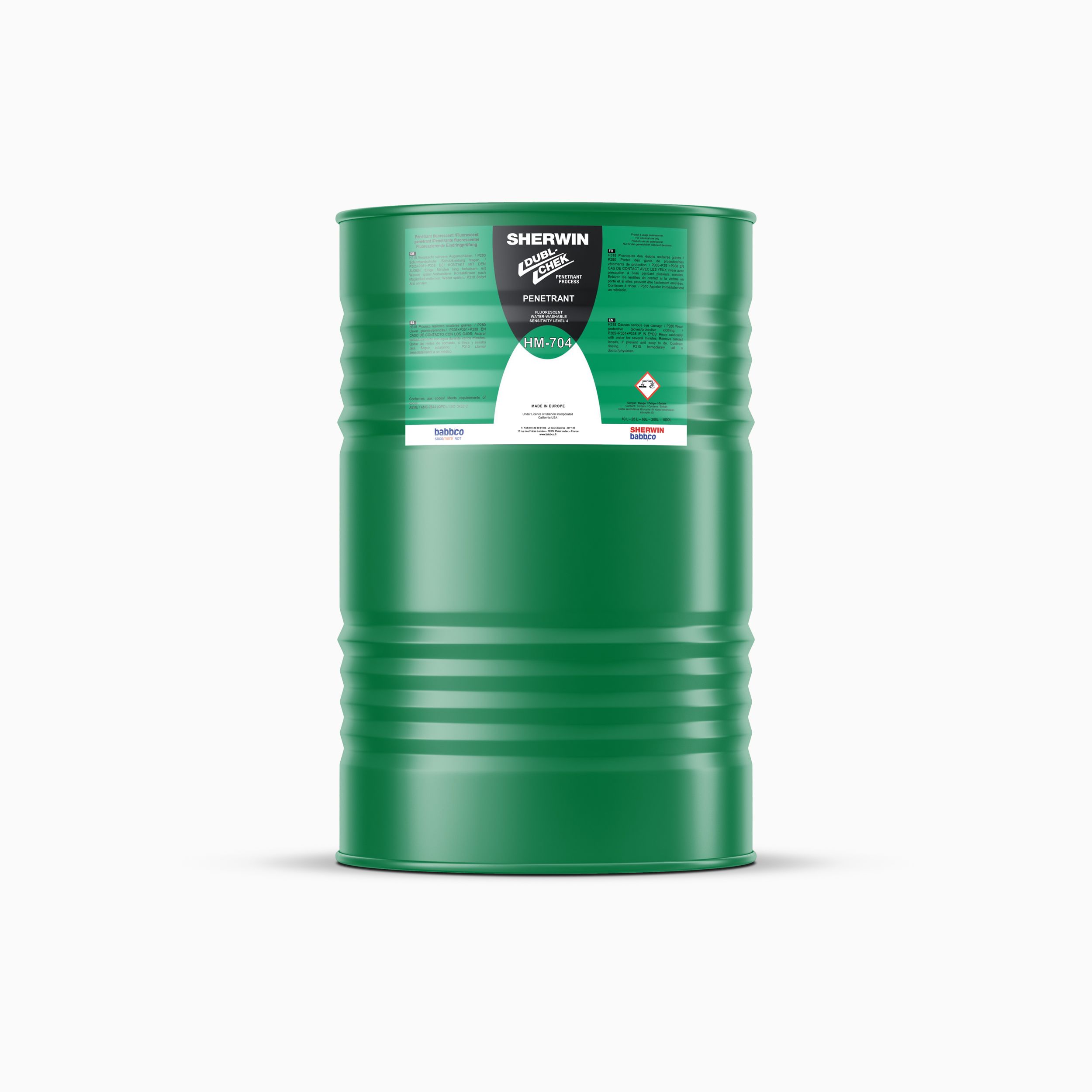 HM-704 is a fluorescent penetrant intended for the search of surface defects. It is is Type 1 Method A Level 4 pre-emulsified fluorescent penetrant according to AMS 2644 and ISO3452-2. This product is scentless with very high biodegradability due to its synthetic base, this allows relatively easy washing while leaving an acceptable background nose, given the high levels of sensitivity offered.