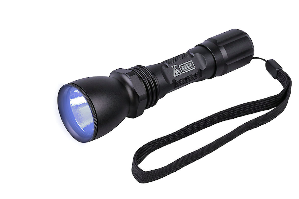 The high powered LED bulb gives intensity greater than 6000μw/cm² at 400mm. The battery life is approximately 4 hours. The torch has been inspected by the Health Protection Agency and is certified.
